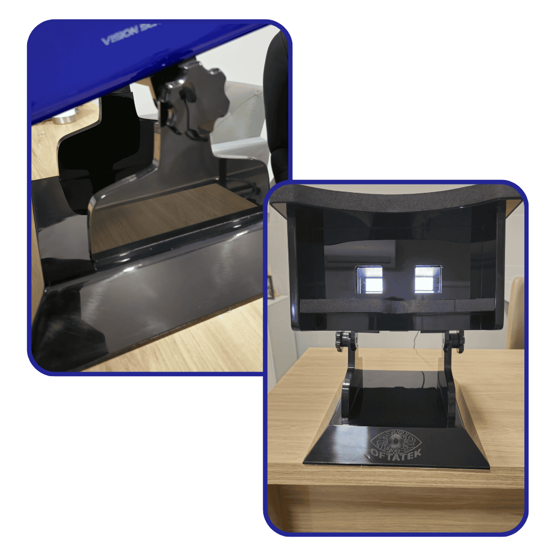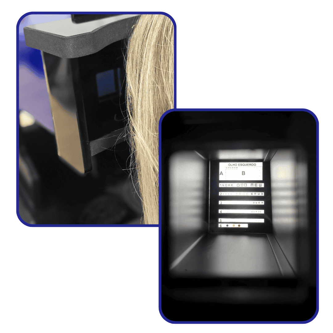 Oferece diagnóstico abrangente para diversas condições visuais, incluindo astigmatismo, sensibilidade ao contraste e daltonismo.